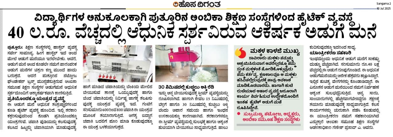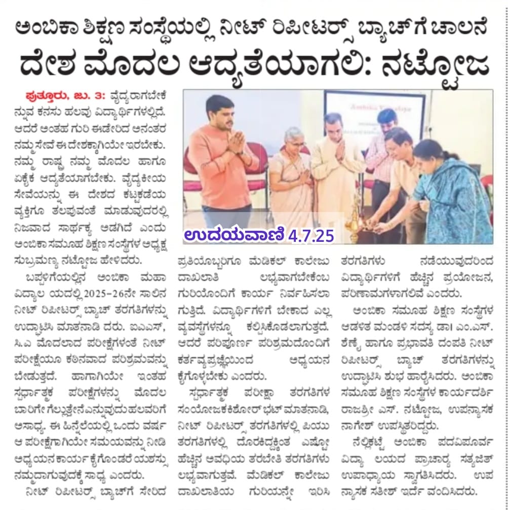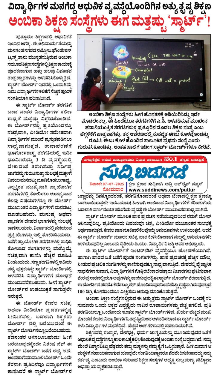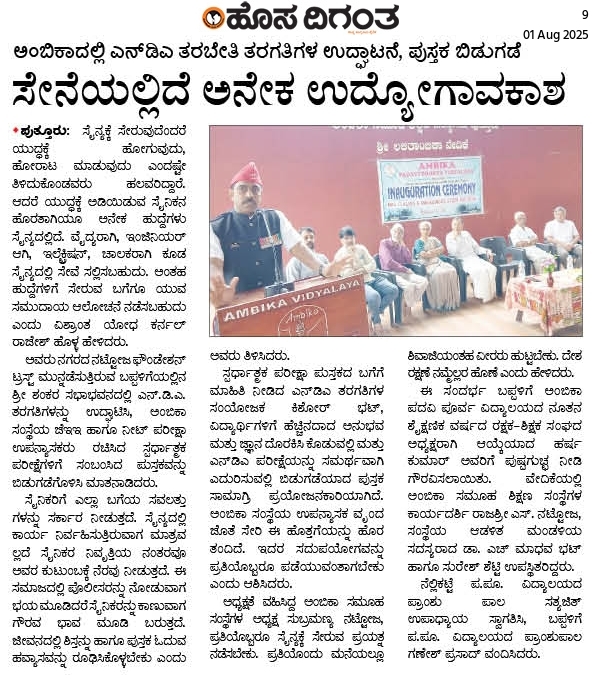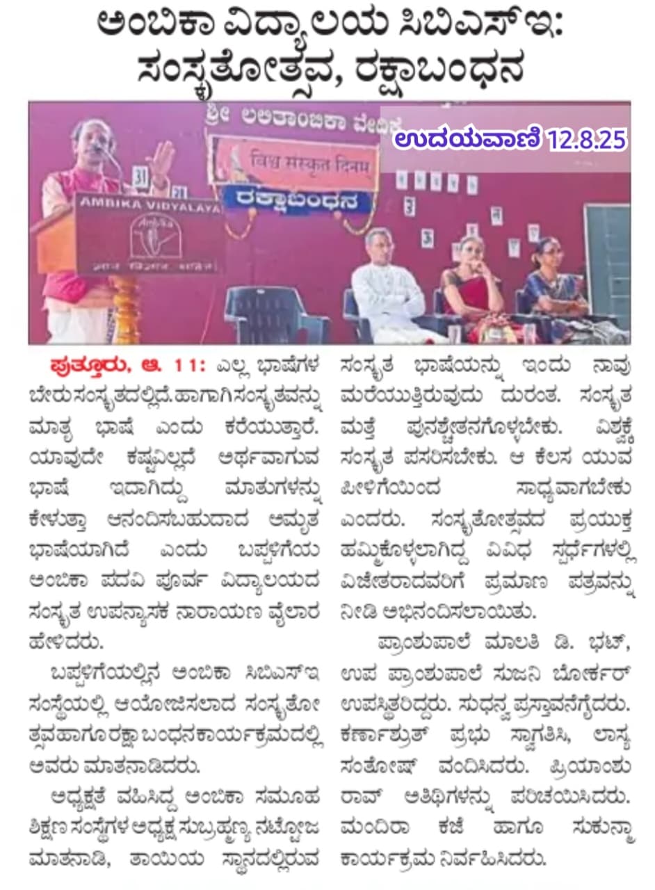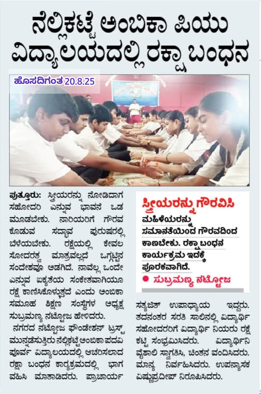 ಅಂಬಿಕಾ ಸಮೂಹ ಶಿಕ್ಷಣ ಸಂಸ್ಥೆಗಳಲ್ಲಿ ಸದ್ಯದಲ್ಲೇ ಹಿಂದೂ ಧರ್ಮ ಶಿಕ್ಷಣ ಆರಂಭ Click Here