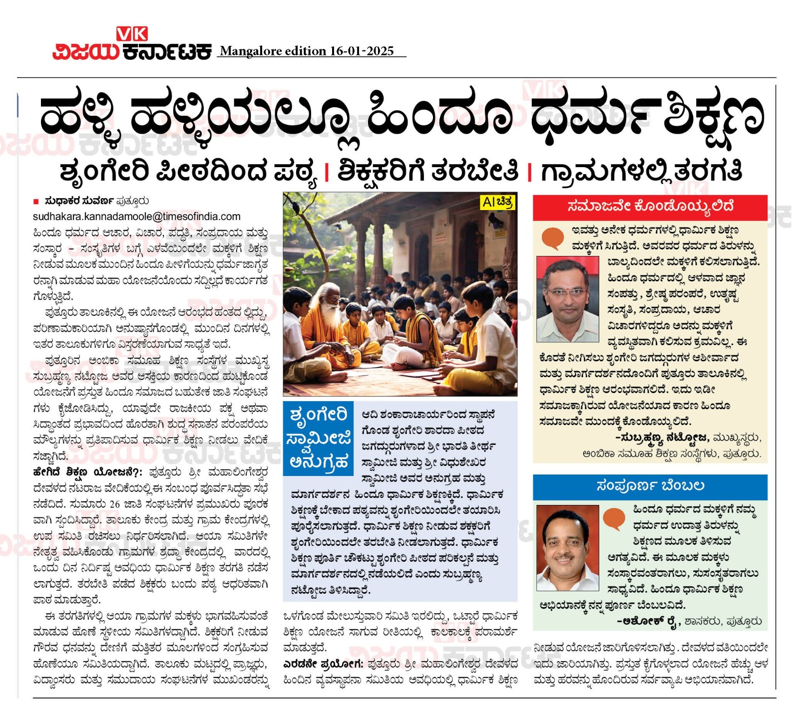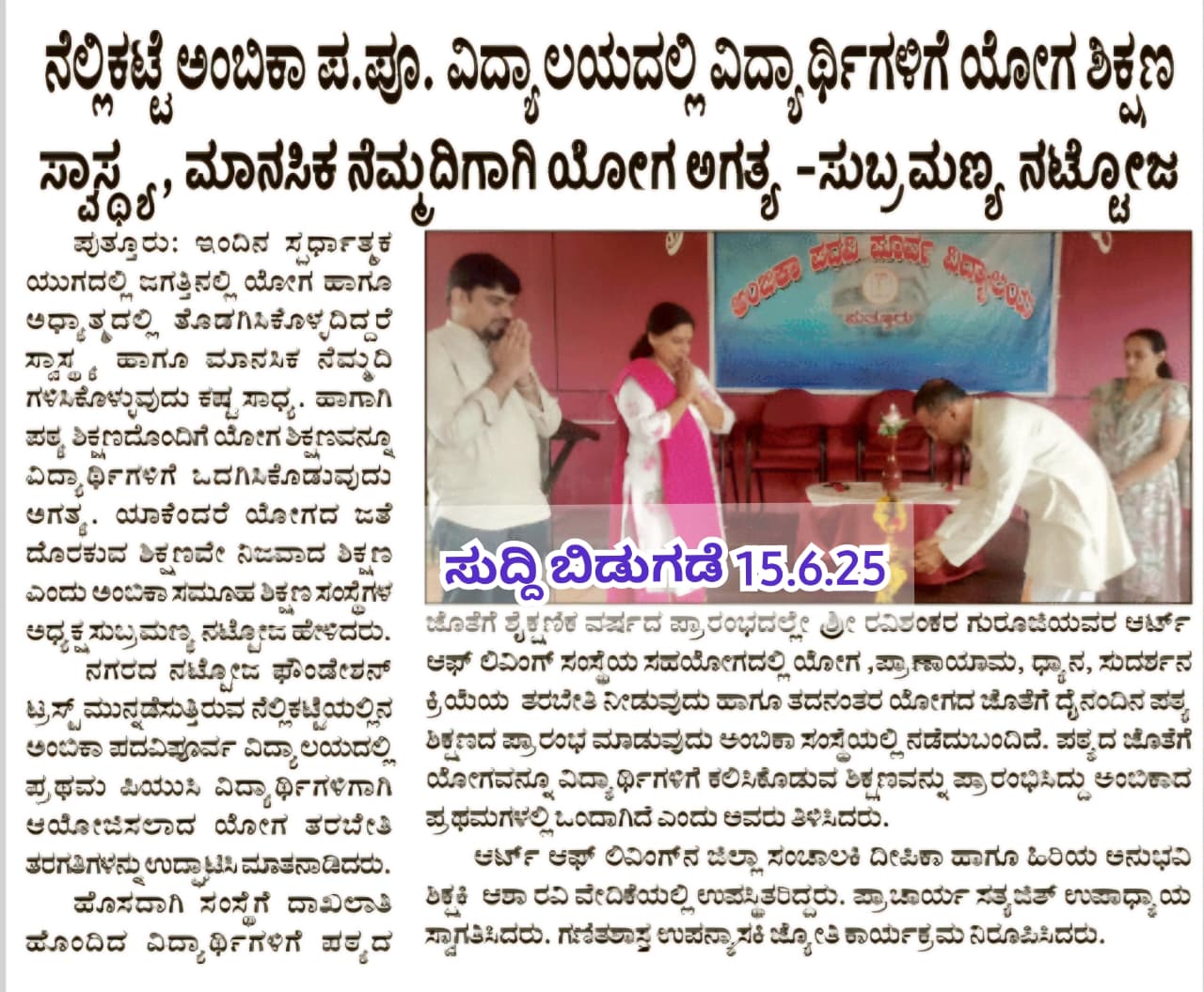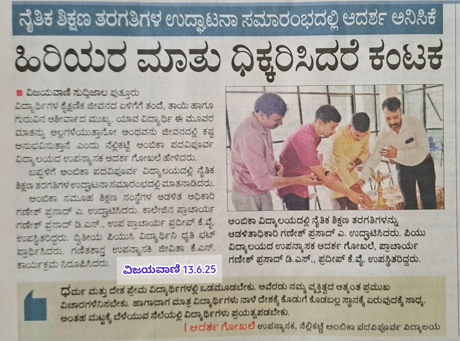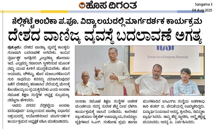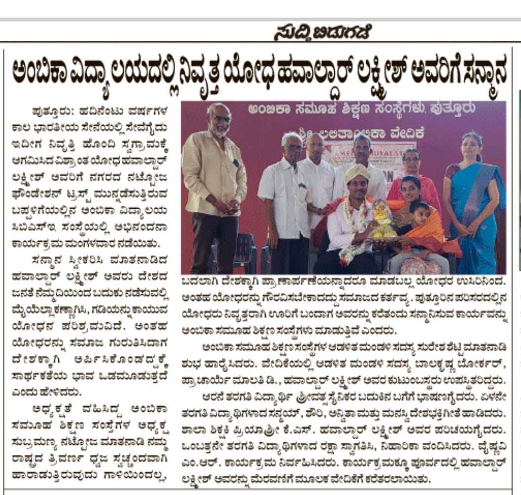 ಅಂಬಿಕಾ ಸಮೂಹ ಶಿಕ್ಷಣ ಸಂಸ್ಥೆಗಳಲ್ಲಿ ಸದ್ಯದಲ್ಲೇ ಹಿಂದೂ ಧರ್ಮ ಶಿಕ್ಷಣ ಆರಂಭ Click Here