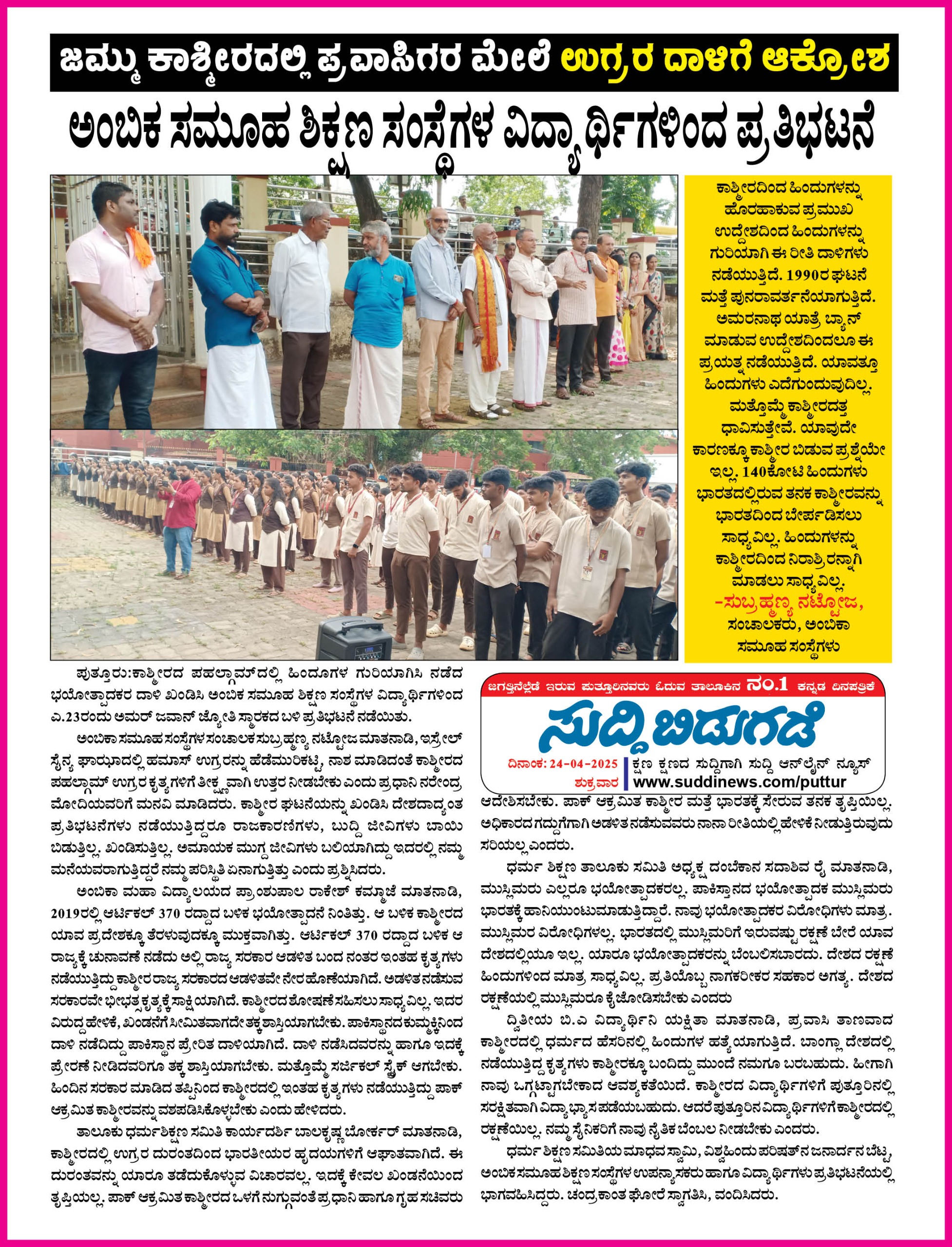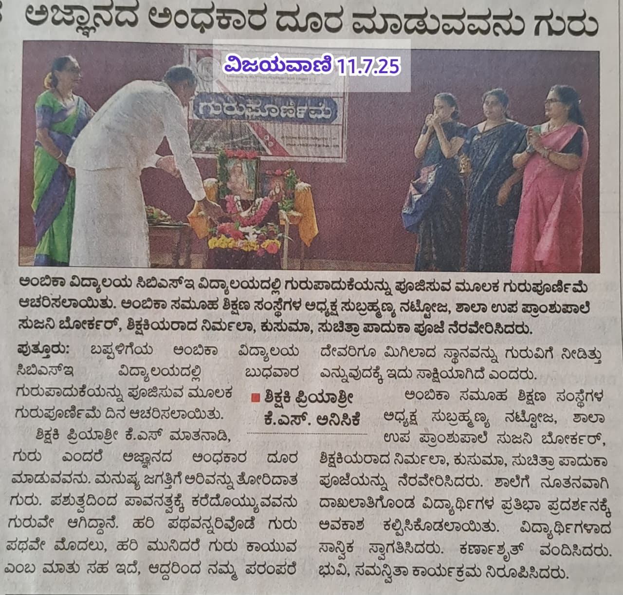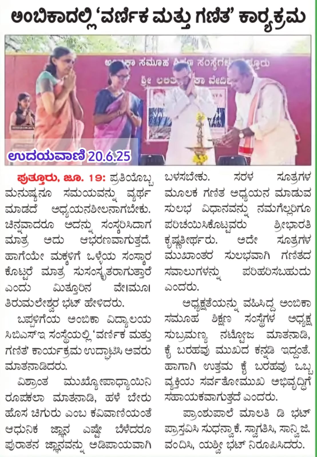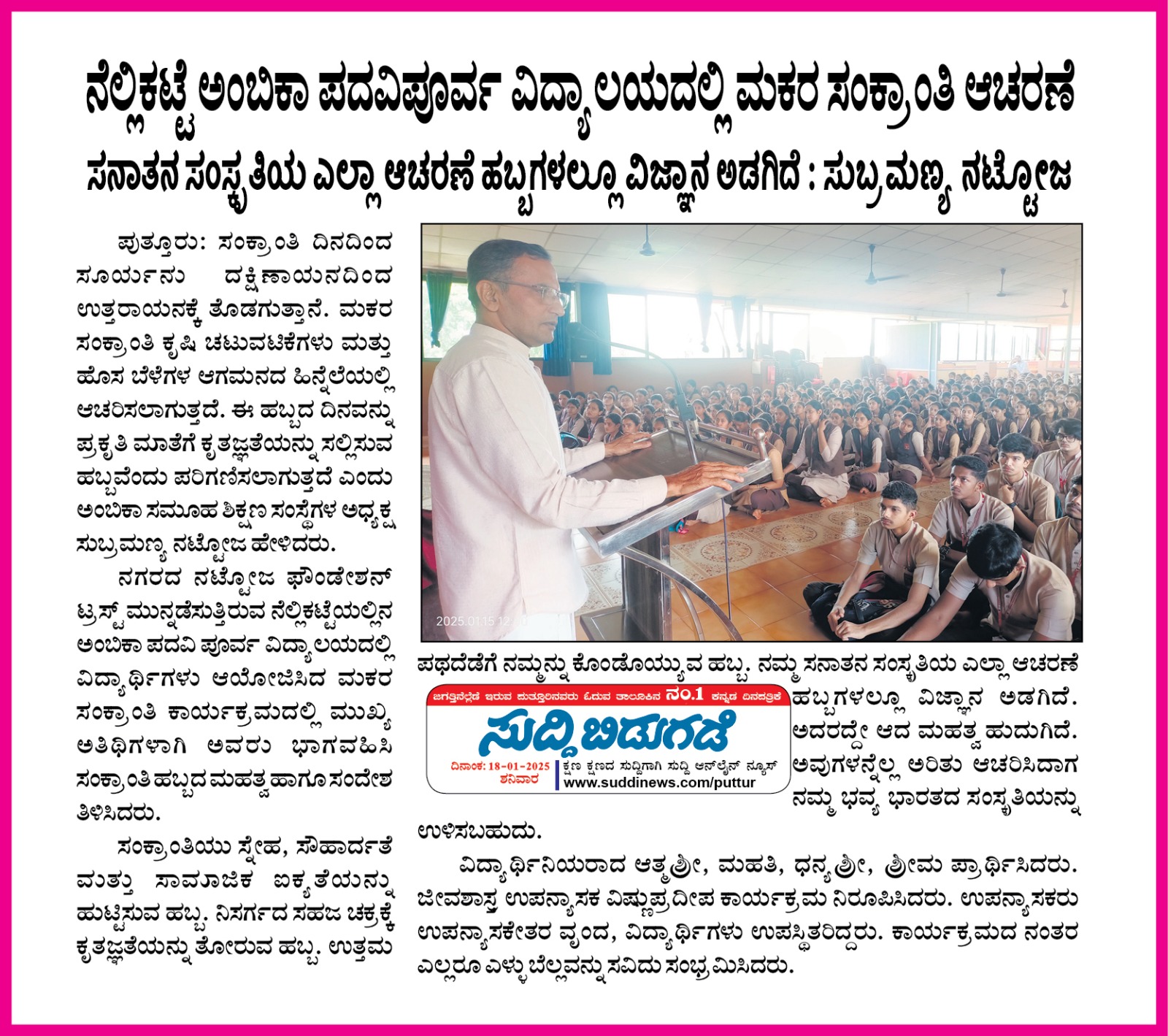 ಅಂಬಿಕಾ ಸಮೂಹ ಶಿಕ್ಷಣ ಸಂಸ್ಥೆಗಳಲ್ಲಿ ಸದ್ಯದಲ್ಲೇ ಹಿಂದೂ ಧರ್ಮ ಶಿಕ್ಷಣ ಆರಂಭ Click Here