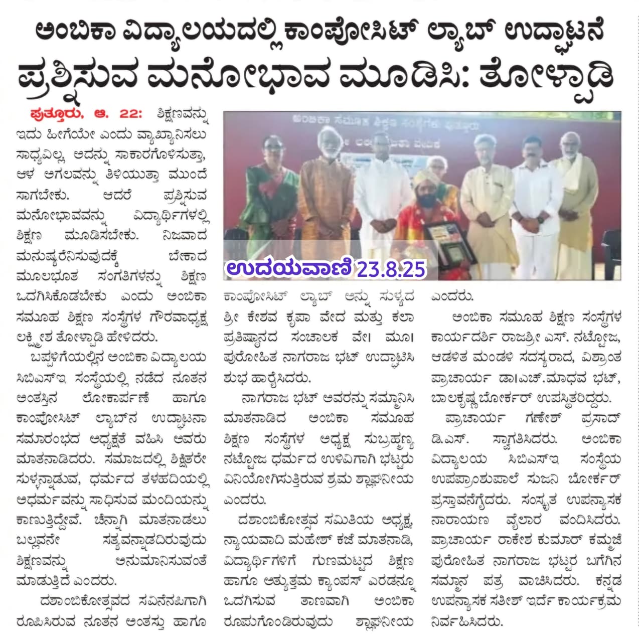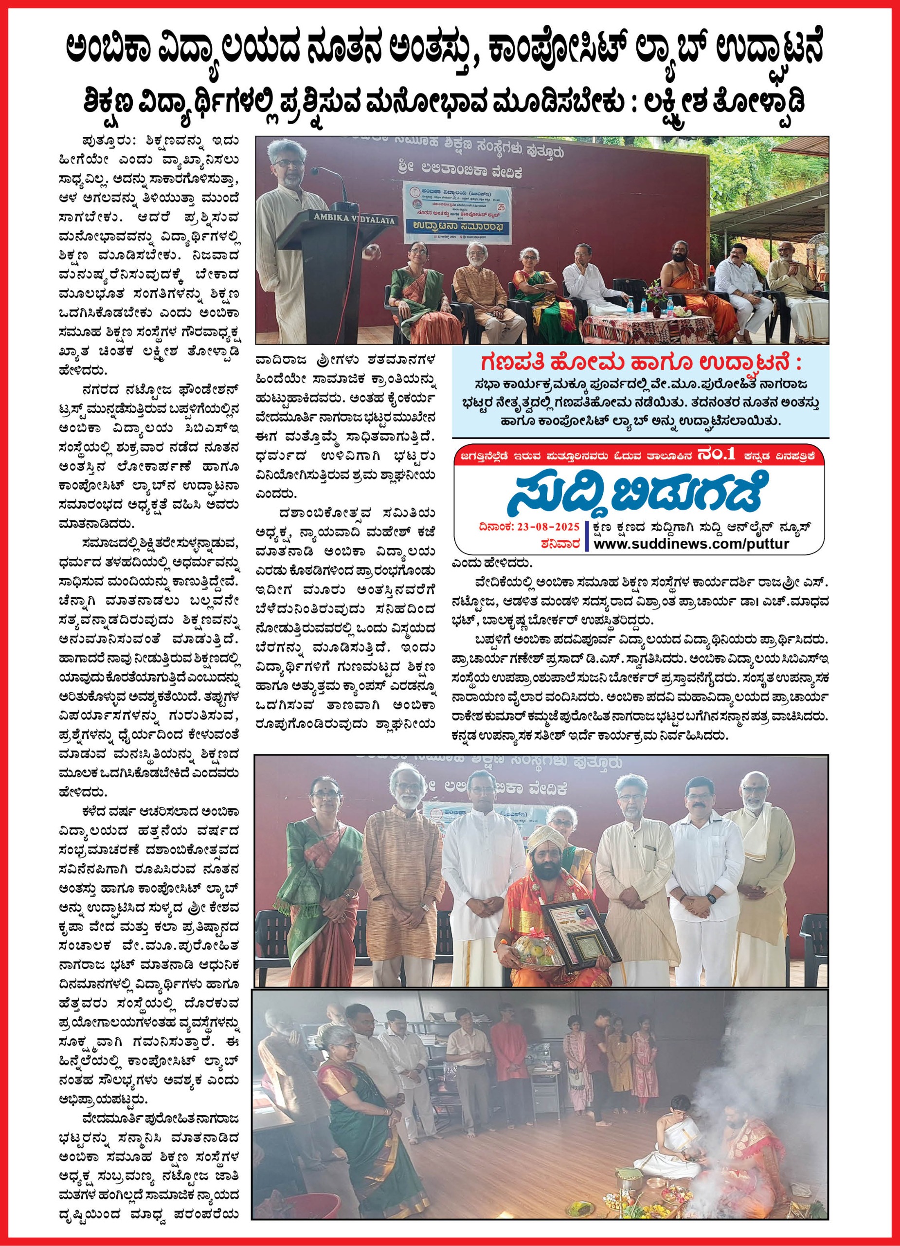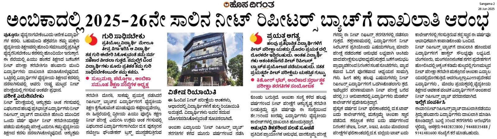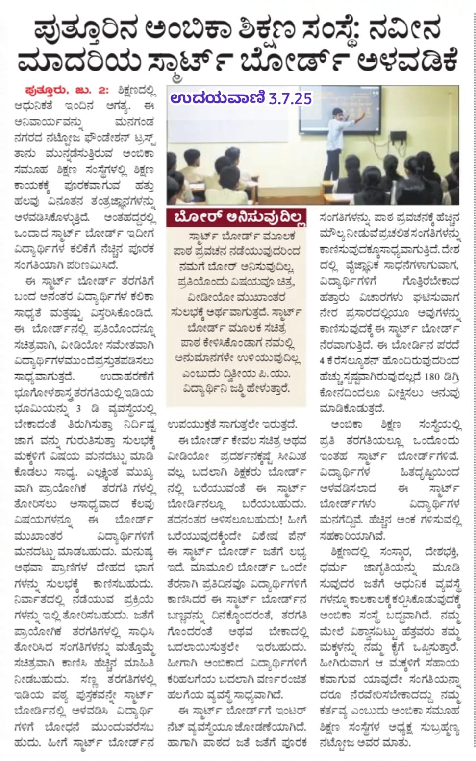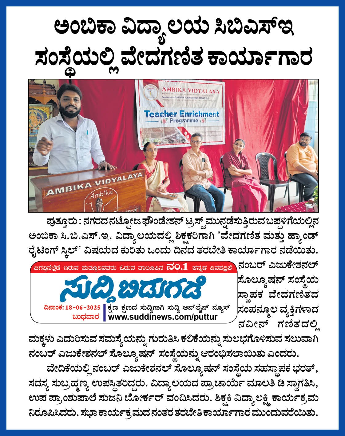 ಅಂಬಿಕಾ ಸಮೂಹ ಶಿಕ್ಷಣ ಸಂಸ್ಥೆಗಳಲ್ಲಿ ಸದ್ಯದಲ್ಲೇ ಹಿಂದೂ ಧರ್ಮ ಶಿಕ್ಷಣ ಆರಂಭ Click Here