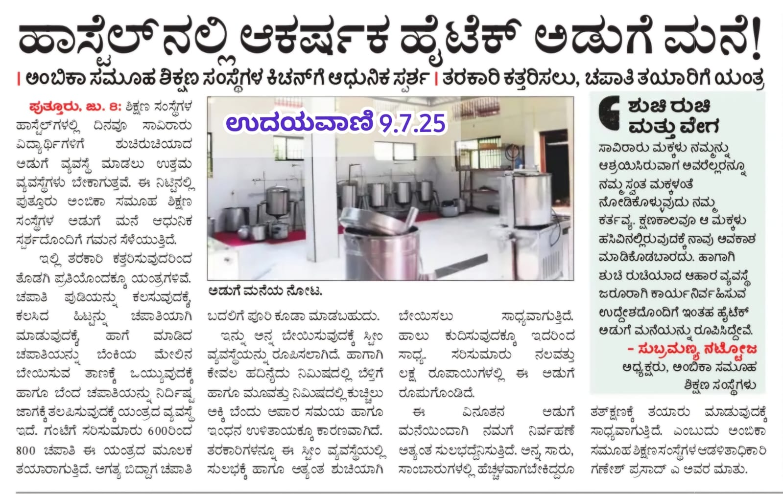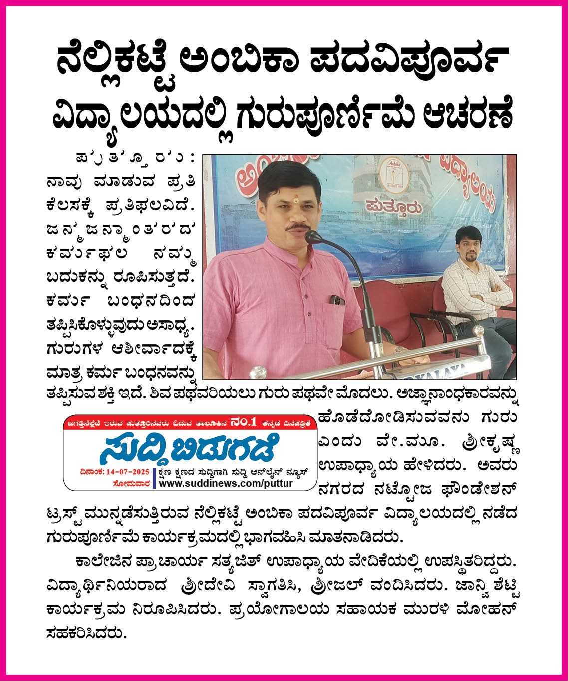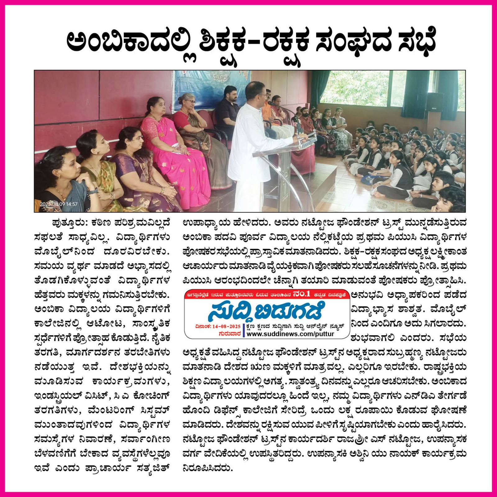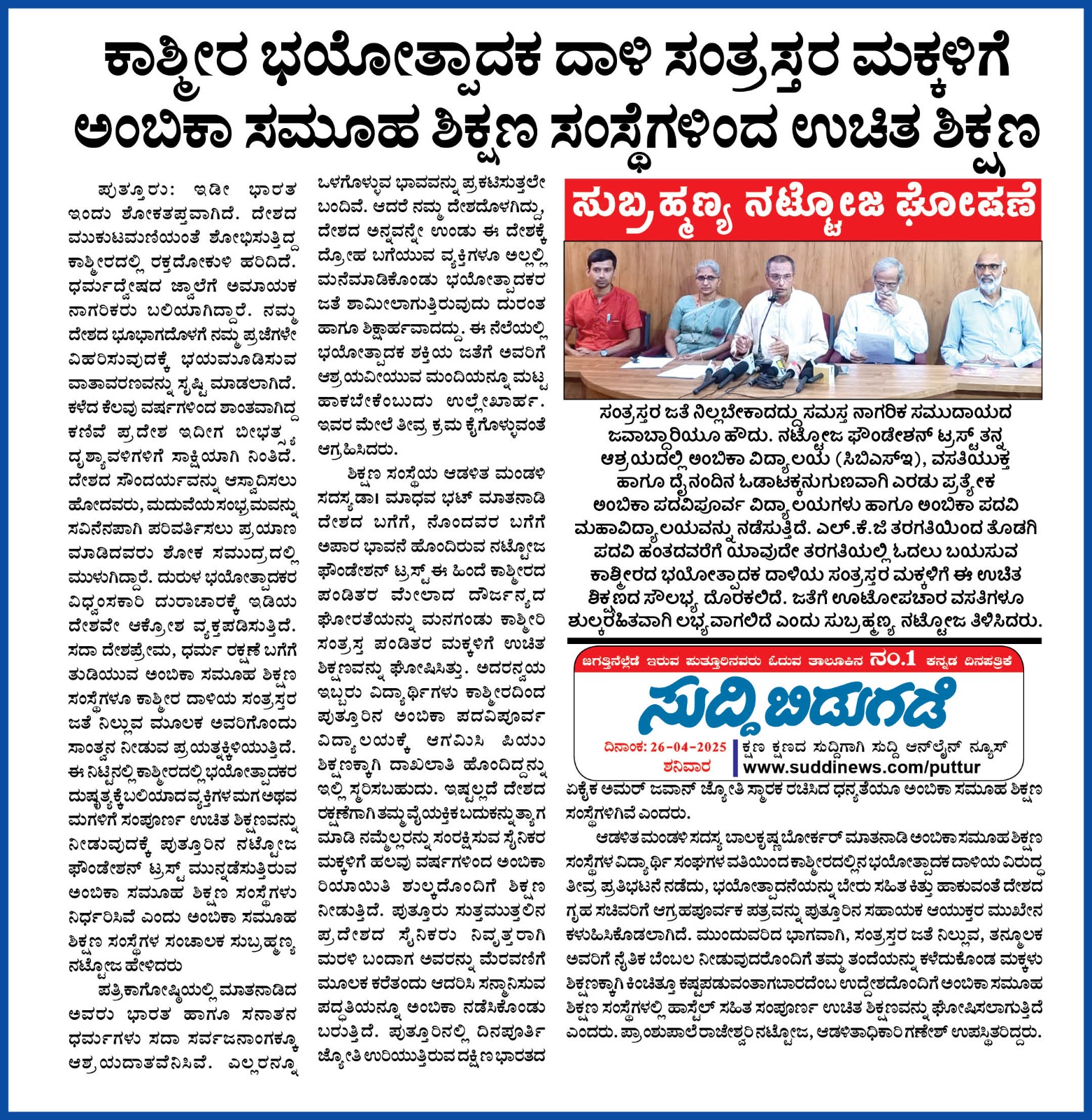 ಅಂಬಿಕಾ ಸಮೂಹ ಶಿಕ್ಷಣ ಸಂಸ್ಥೆಗಳಲ್ಲಿ ಸದ್ಯದಲ್ಲೇ ಹಿಂದೂ ಧರ್ಮ ಶಿಕ್ಷಣ ಆರಂಭ Click Here