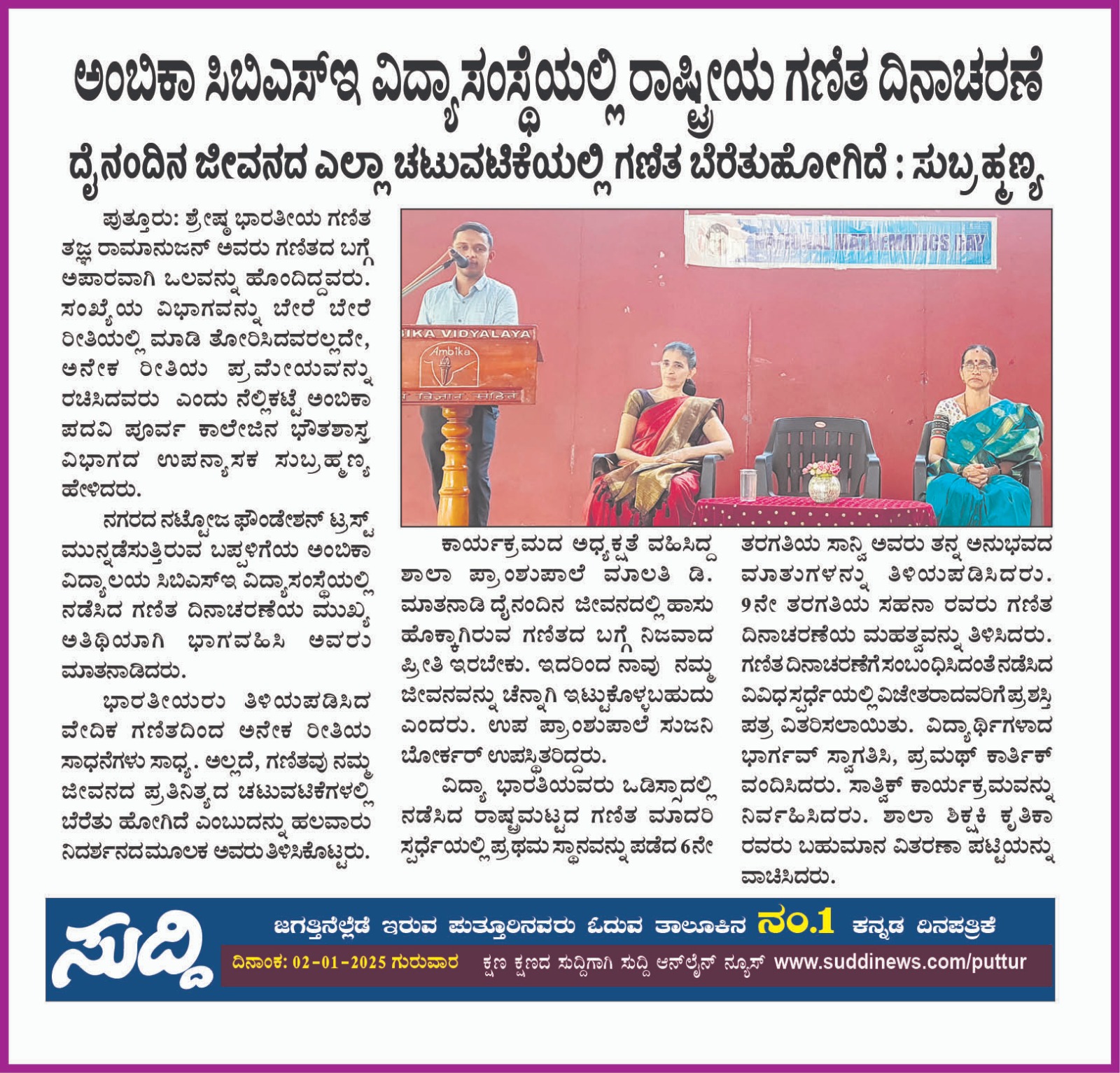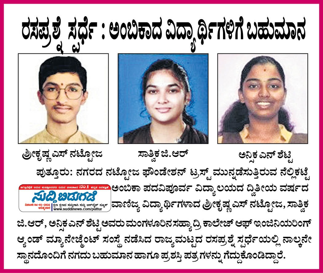 ರಸಪ್ರಶ್ನೆ ಸ್ಪರ್ಧೆ : ಅಂಬಿಕಾದ ವಿದ್ಯಾರ್ಥಿಗಳಿಗೆ ಬಹುಮಾನ Click Here