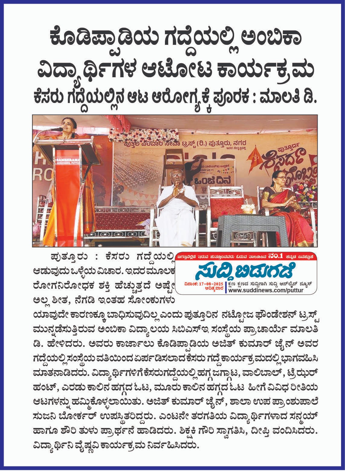 ಅಂಬಿಕಾ ಪ.ಪೂ.ವಿದ್ಯಾಲಯದಲ್ಲಿ ’ವಂದೇ ಮಾತರಂ’ ಗಾಯನ ಸ್ಪರ್ಧೆ ಉದ್ಘಾಟನೆ Click Here