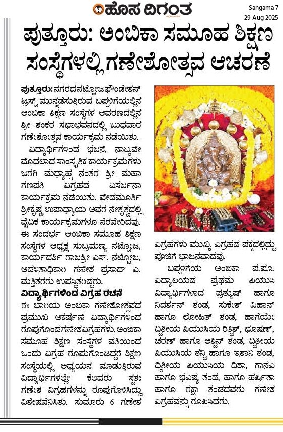 ಅಂಬಿಕಾ ಸಮೂಹ ಶಿಕ್ಷಣ ಸಂಸ್ಥೆಗಳಿಂದ ಗಣೇಶೋತ್ಸವ ಆಚರಣೆ Click Here