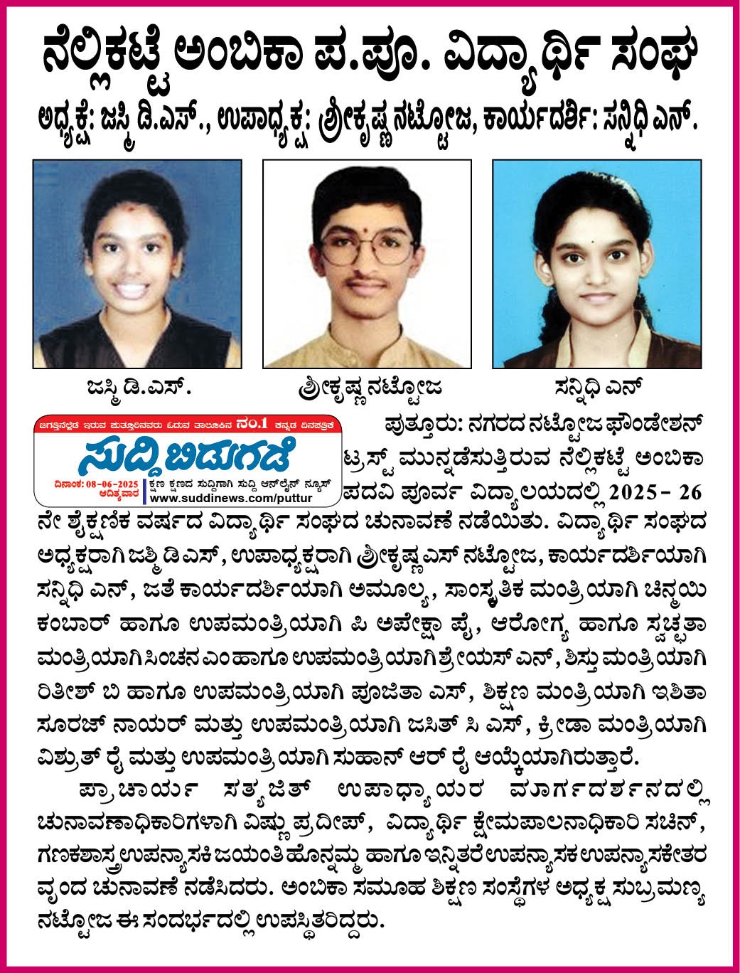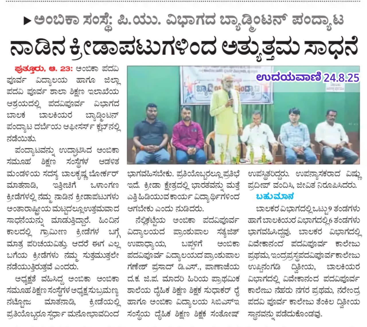 ಅಂಬಿಕಾ ಪ.ಪೂ.ವಿದ್ಯಾಲಯಗಳ ವಾರ್ಷಿಕೋತ್ಸವ - ಮಾನಸೋಲ್ಲಾಸ 2025-25  Click Here