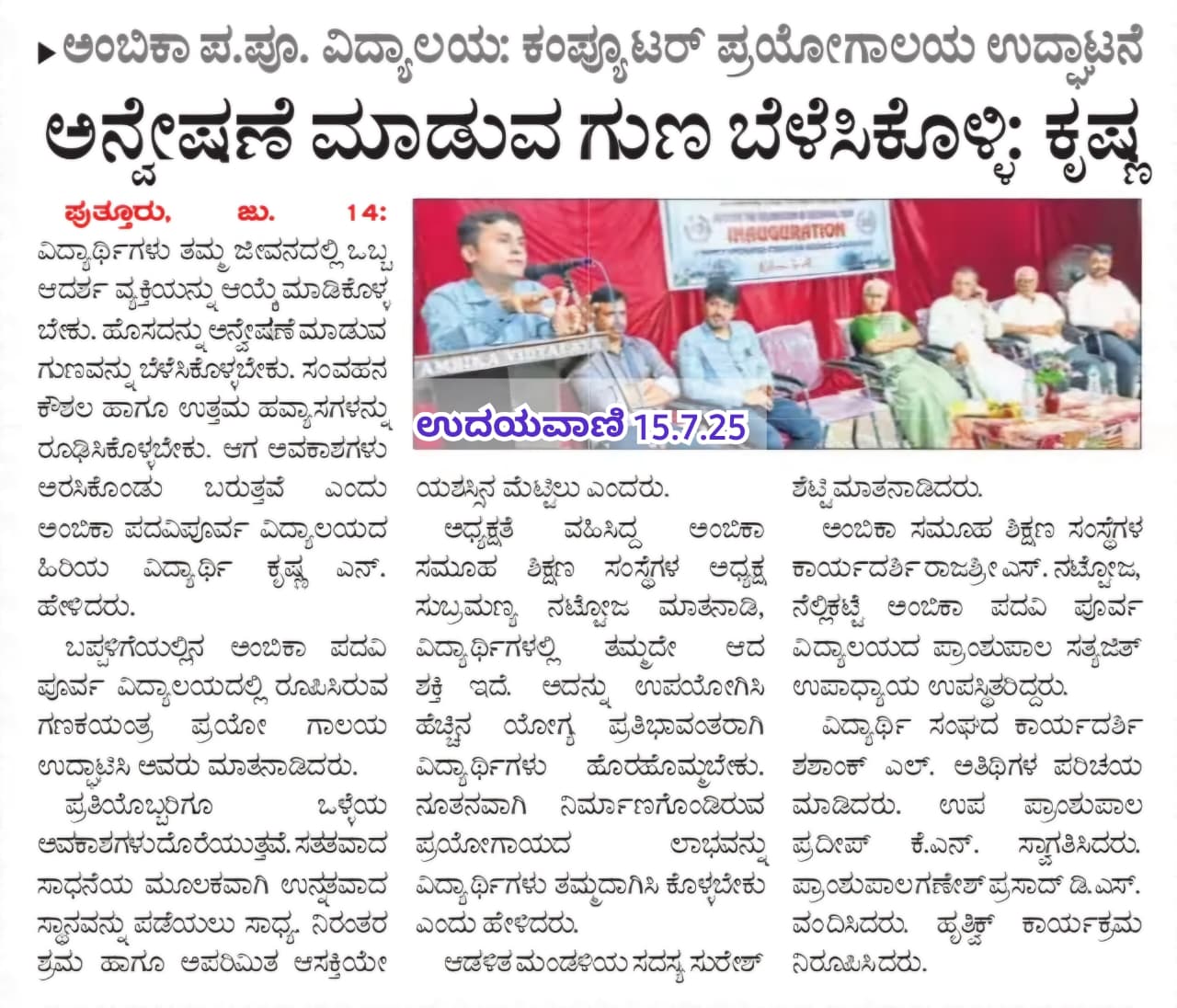 ಅಂಬಿಕಾ ಪದವಿಪೂರ್ವ ವಿದ್ಯಾಲಯದಲ್ಲಿ ಎಡಿಎತರಗತಿಗಳಿಗೆ ಚಾಲನೆ  Click Here