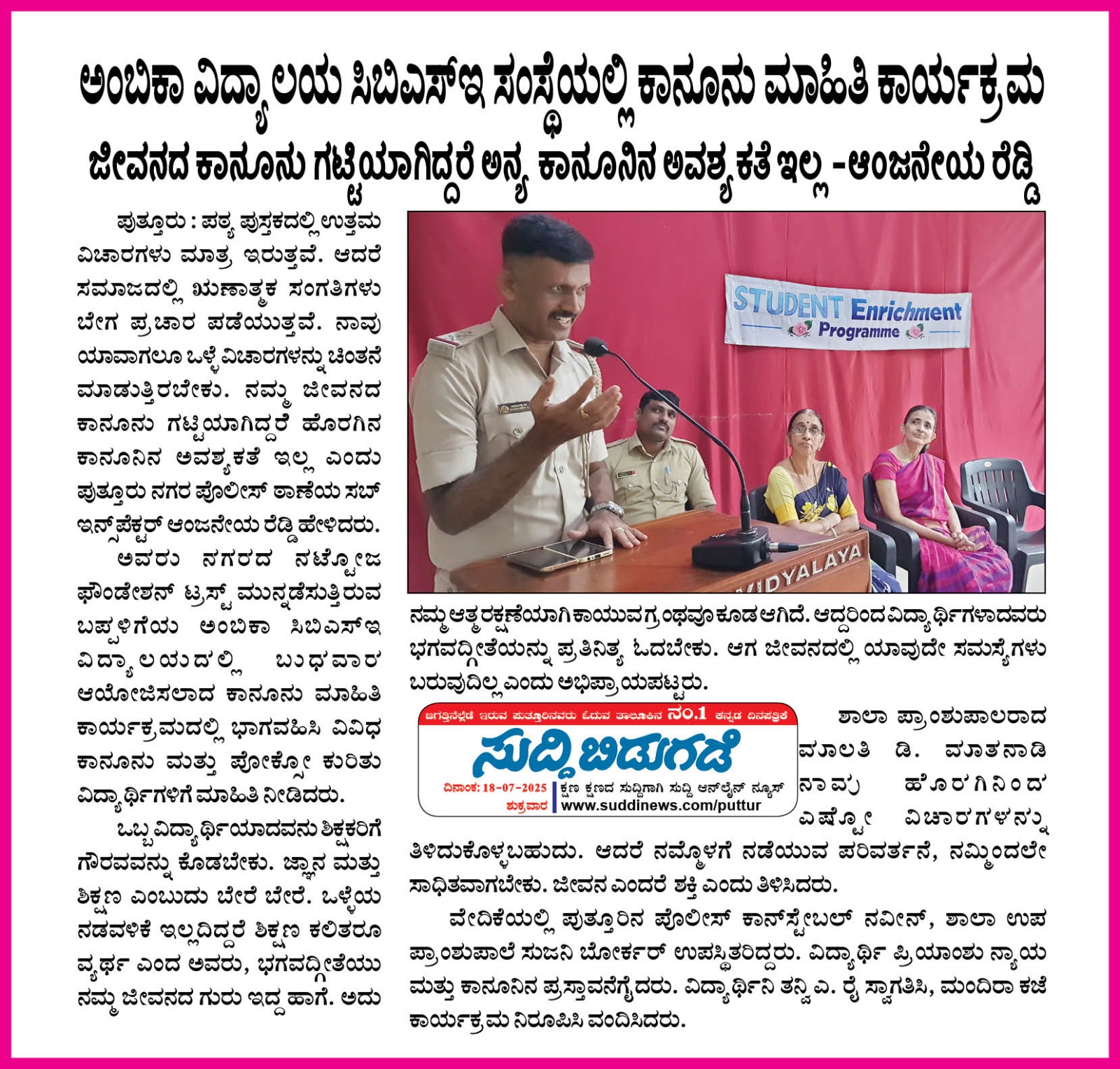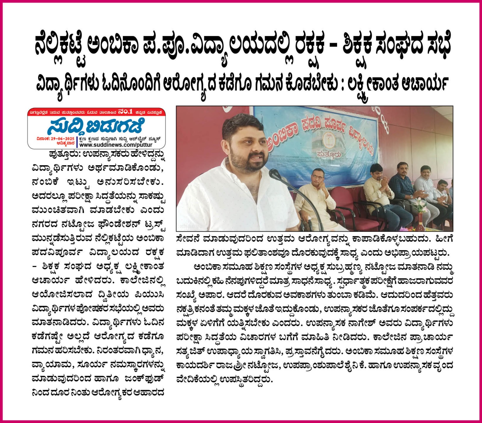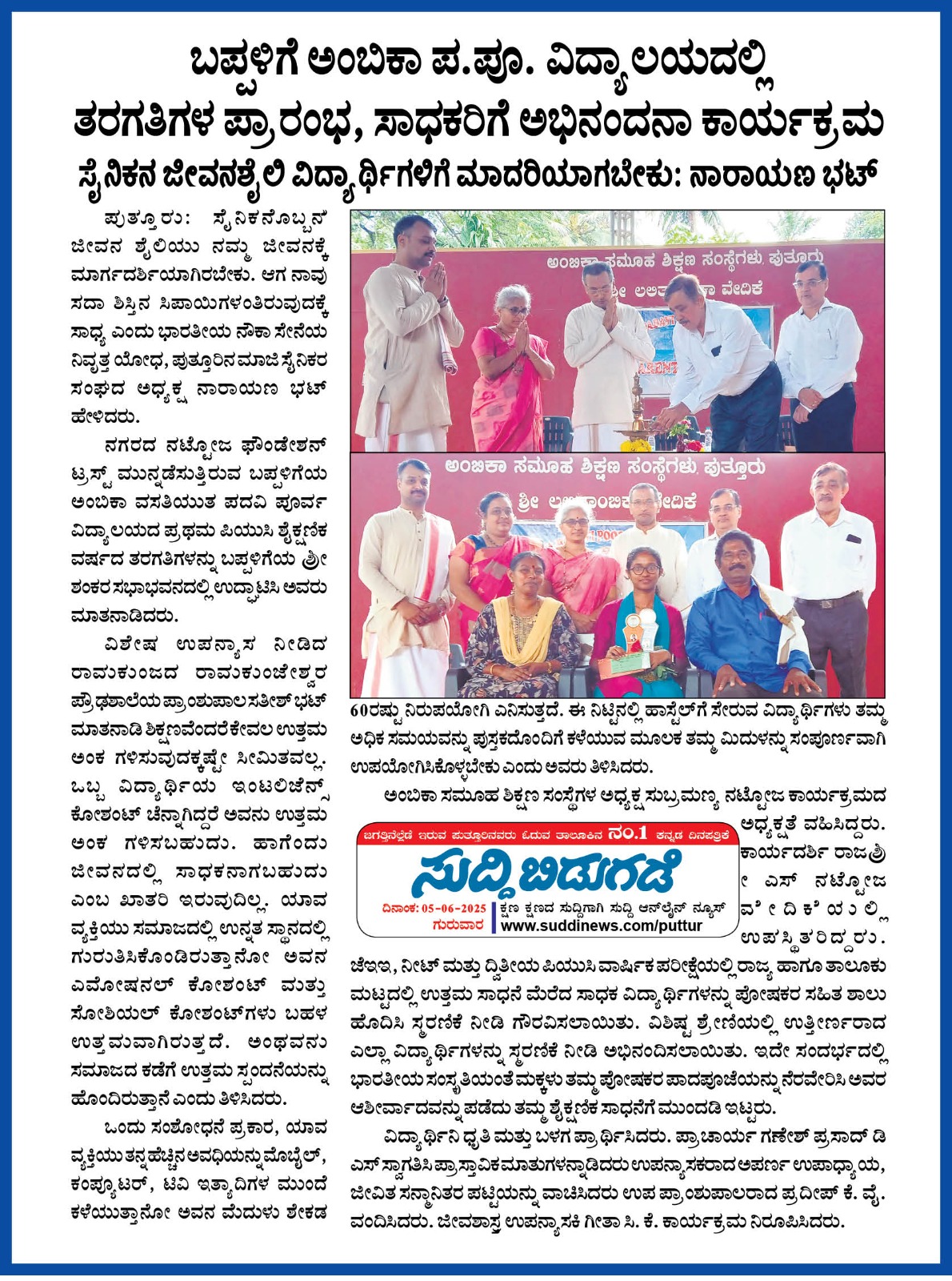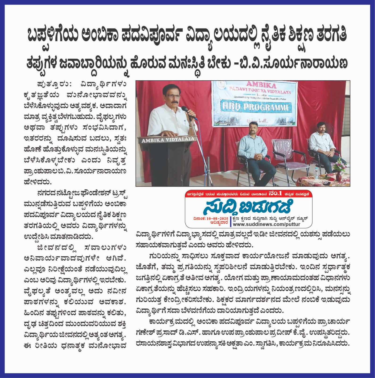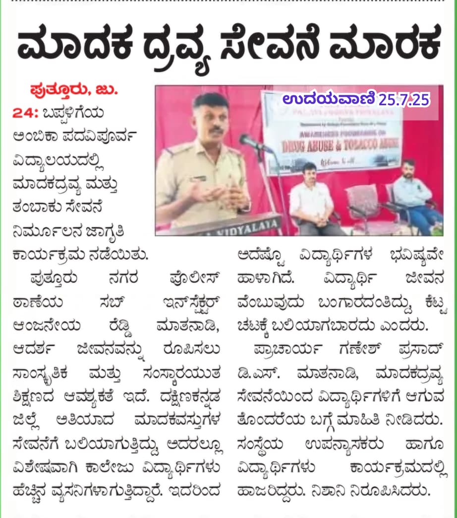 ಬಪ್ಪಳಿಗೆಯ Ambika ಪದವಿಪೂರ್ವ ವಿದ್ಯಾಲಯದಲ್ಲಿ ವ್ಯಕ್ತಿತ್ವ ವಿಕಸನ ಕಾರ್ಯಕ್ರಮ Click Here
