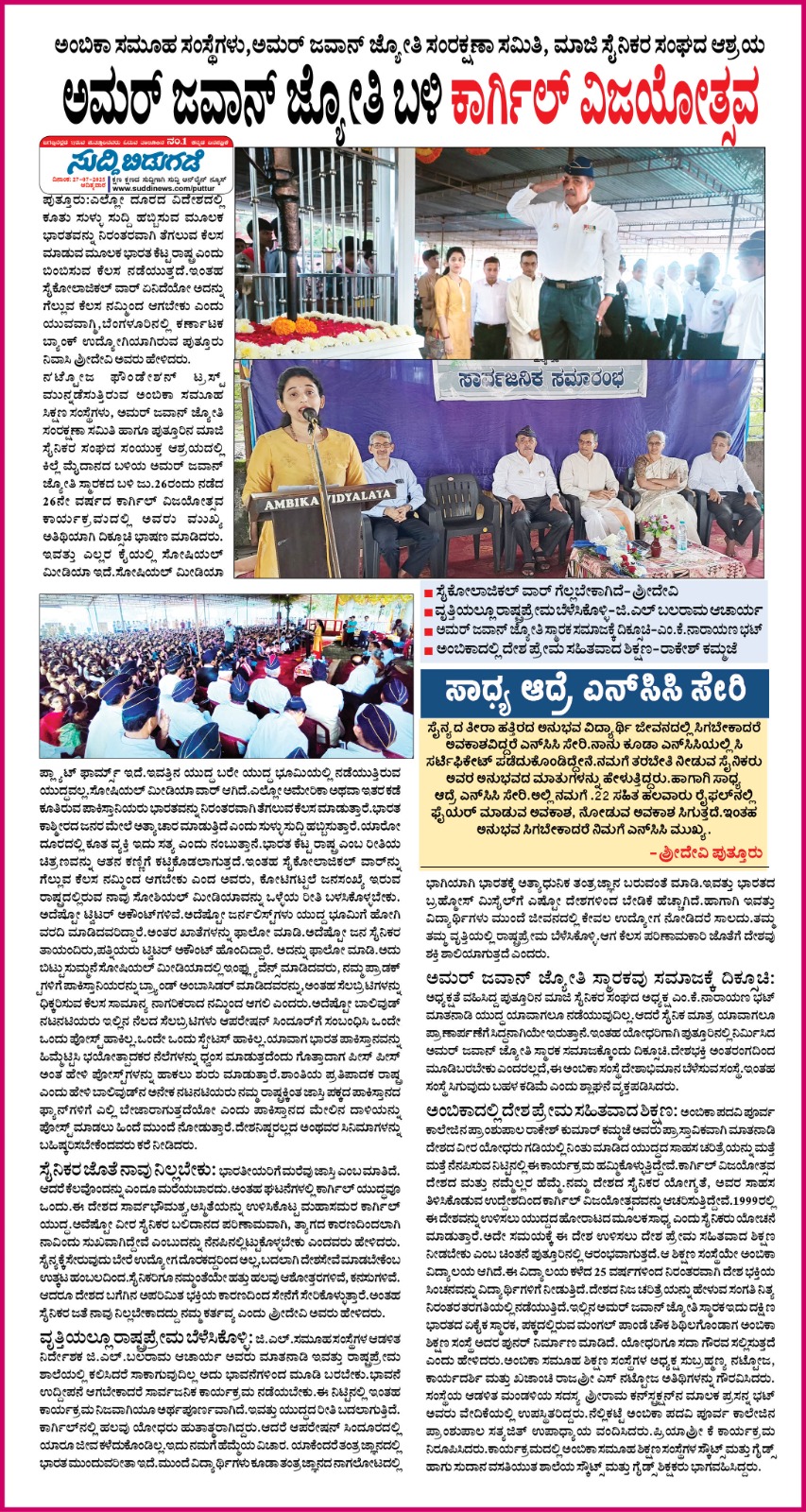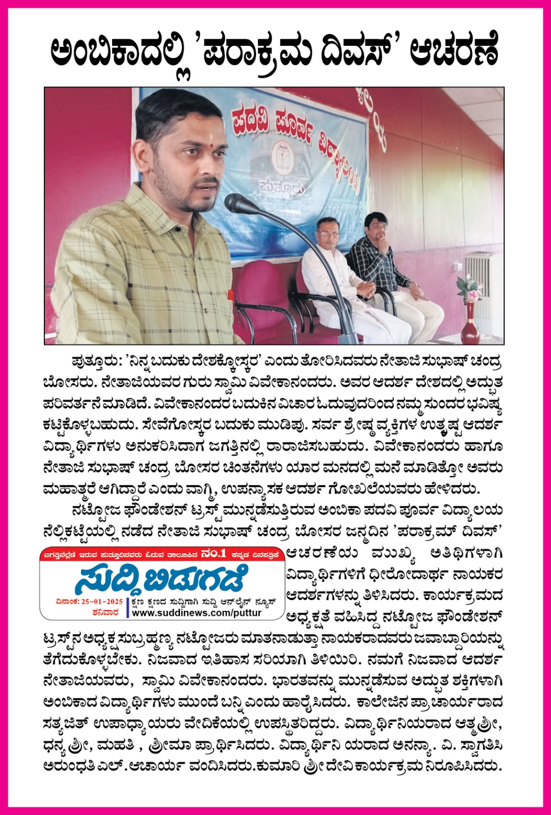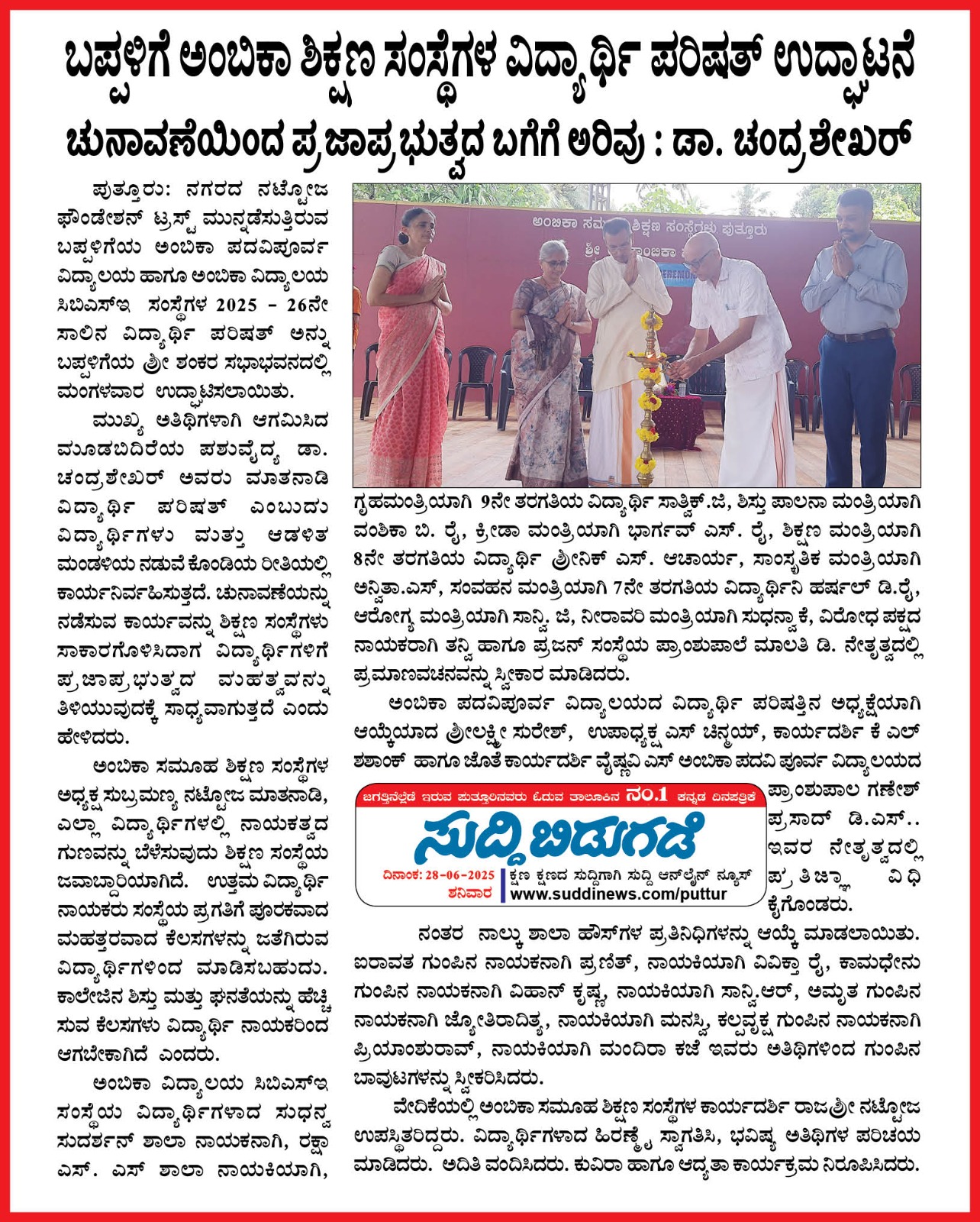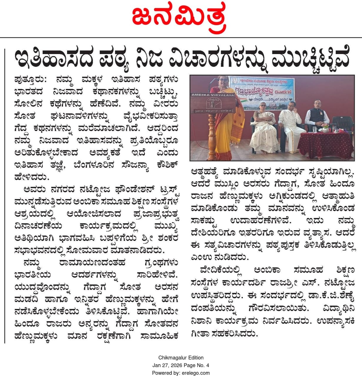 ಅಂಬಿಕಾ ಸಮೂಹ ಶಿಕ್ಷಣ ಸಂಸ್ಥೆಗಳಲ್ಲಿ ಪ್ರಜಾಪ್ರಭುತ್ವ ದಿನಾಚರಣೆ | ನಮ್ಮ ಇತಿಹಾಸದ ಪಠ್ಯಗಳು ನಿಜ ವಿಚಾರಗಳನ್ನು ಮುಚ್ಚಿಟ್ಟಿವೆ : ಸೌಜನ್ಯಾ ಕೌಶಿಕ್ Click Here