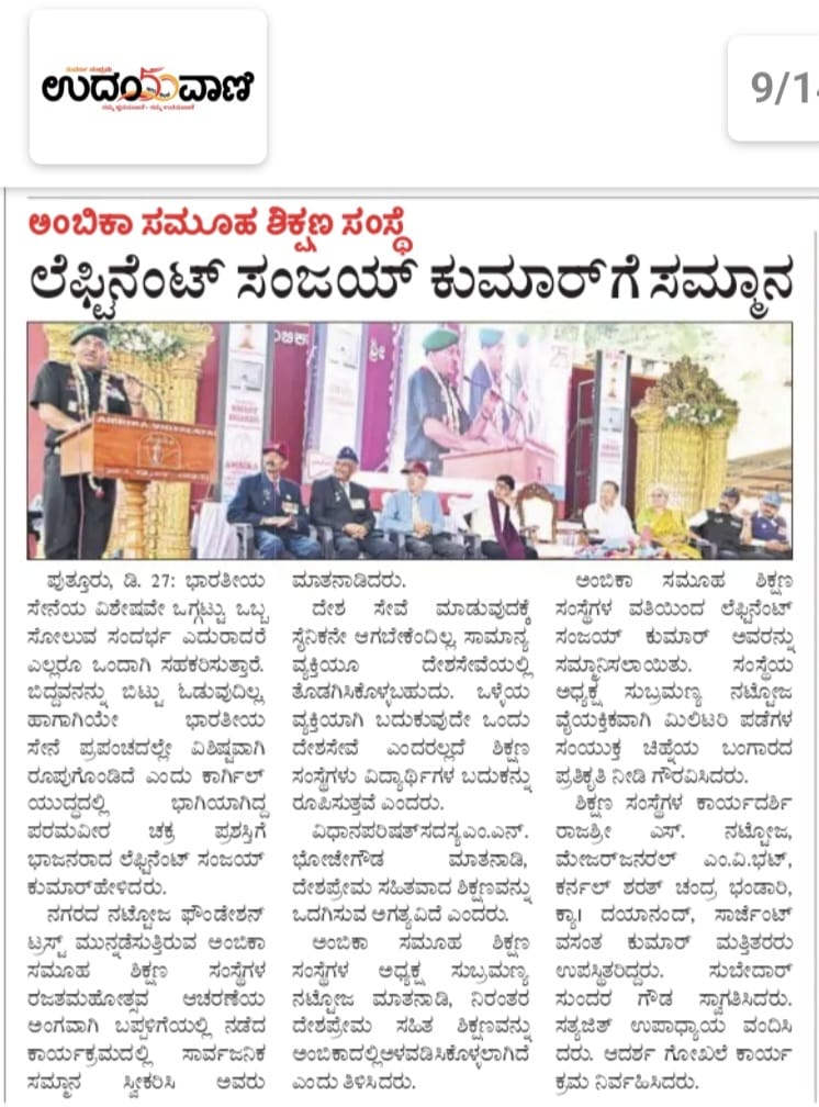 ಲೆ.ಸಂಜಯ್ ಕುಮಾರ್ ಕಾರ್ಯಕ್ರಮಕ್ಕೆ ಅಭಿನಂದನೆಗಳ ಮಹಾಪೂರ Click Here
